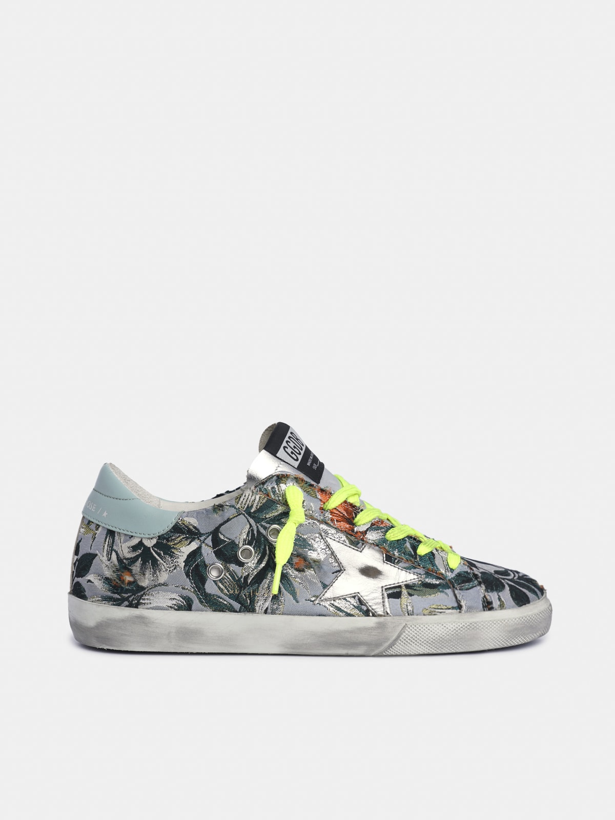 Super Star sneakers in floral patterned jacquard with a silver star Very well made.