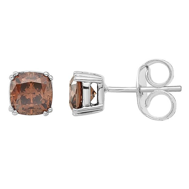 Sterling Silver Brown Diamonore 6 mm Cubic Zirconia Cushion Stud Very well made.