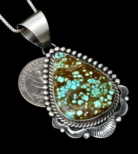 Mary Ann Spencer old style patina Navajo pendant and chain with No. 8 Mine turquoise. 2095 Very well made.