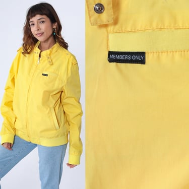Members Only Jacket 90s Yellow Bomber Jacket Zip Up Windbreaker Very well made.
