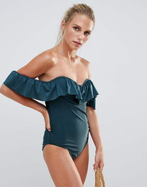 French Connection Off Shoulder Ruffle Swimsuit Very well made.
