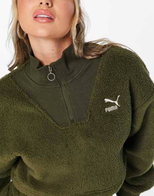 Puma classics cosy club borg half zip sweat in deep olive exclusive to ASOS Very well made.