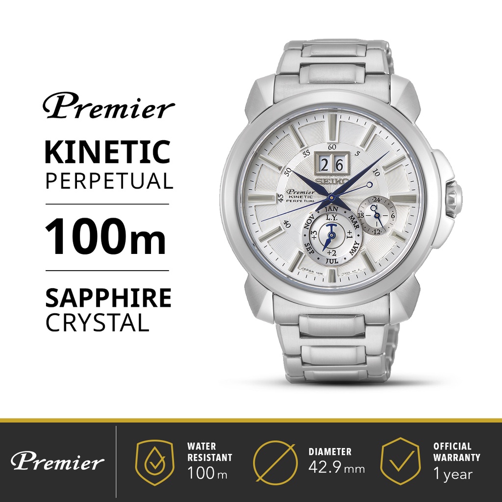 Jual Jam Tangan Pria Seiko Premier Kinetic Perpetual White Dial Very well made.