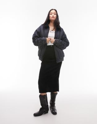 Topshop denim bomber borg jacket in dark blue Very well made.