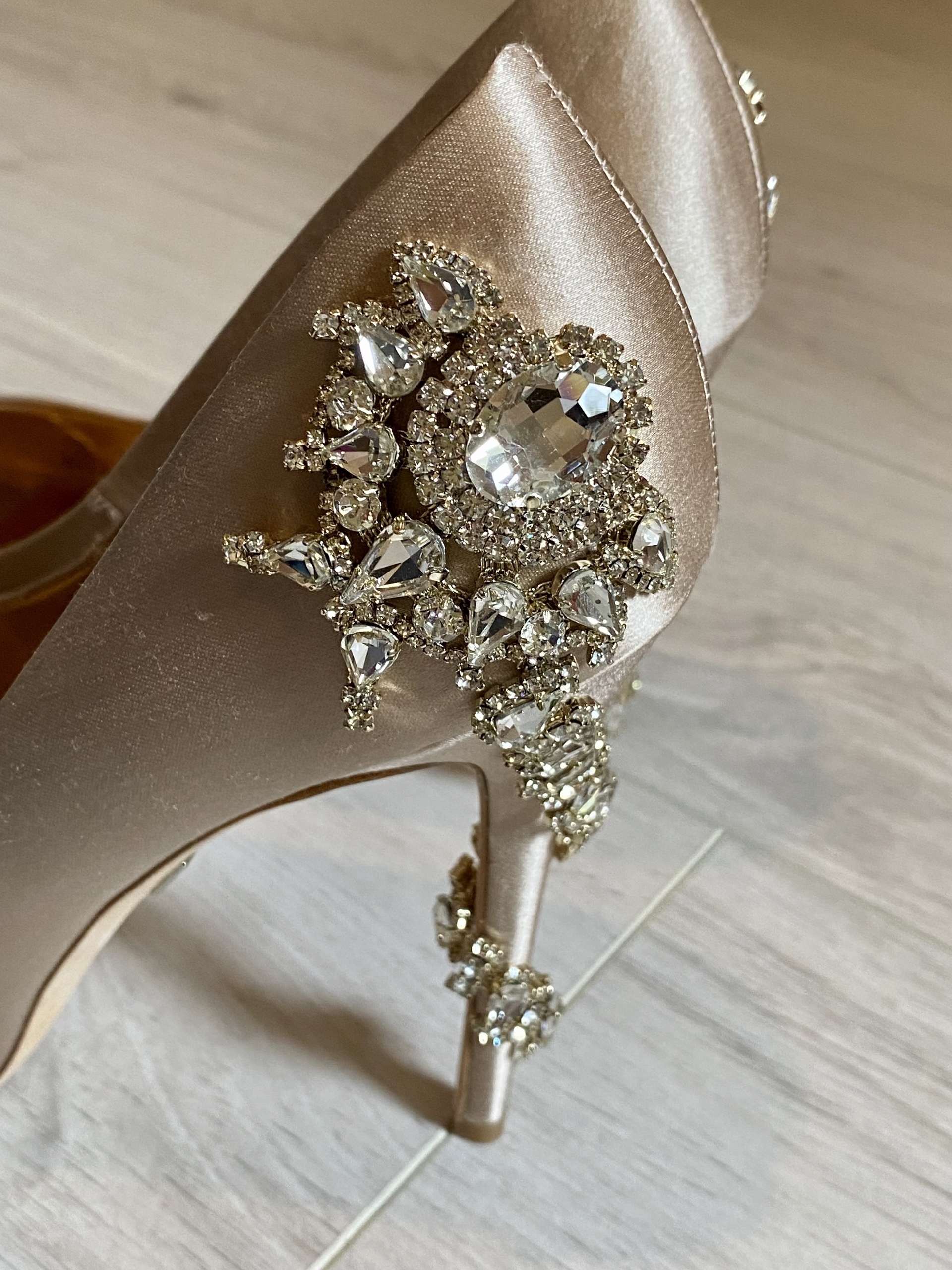 Buy the Badgley Mischka Royal Embellished Peep Toe High Heel Shoes Very well made.