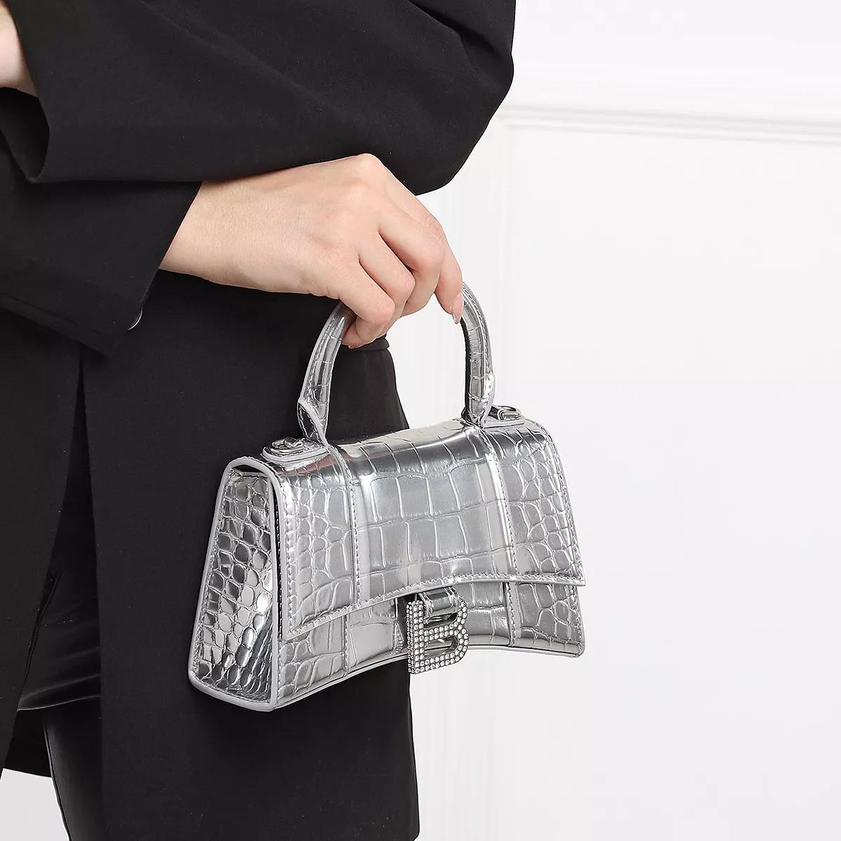 Balenciaga Hourglass Metallic Finish Crocodile Embossed Silver Very well made.