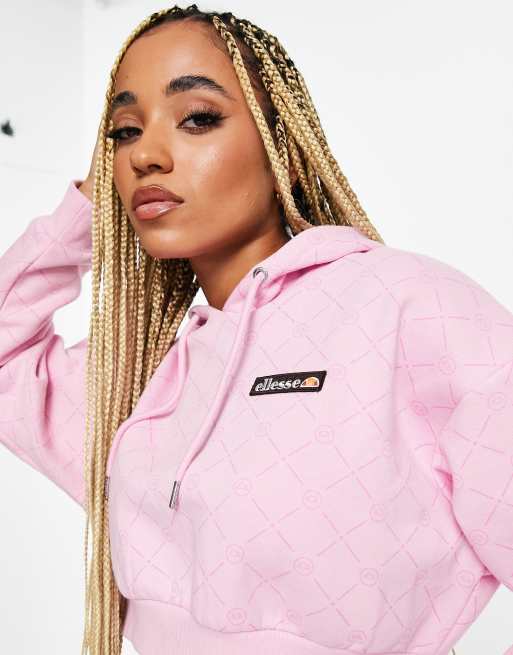 ellesse coffee pack monogram cropped hoodie with branding in pink Very well made.