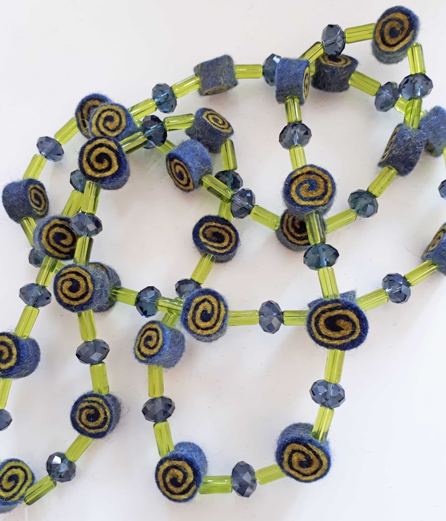 Navy and Lime Felt Necklace with Lime Green and Folksy Very well made.