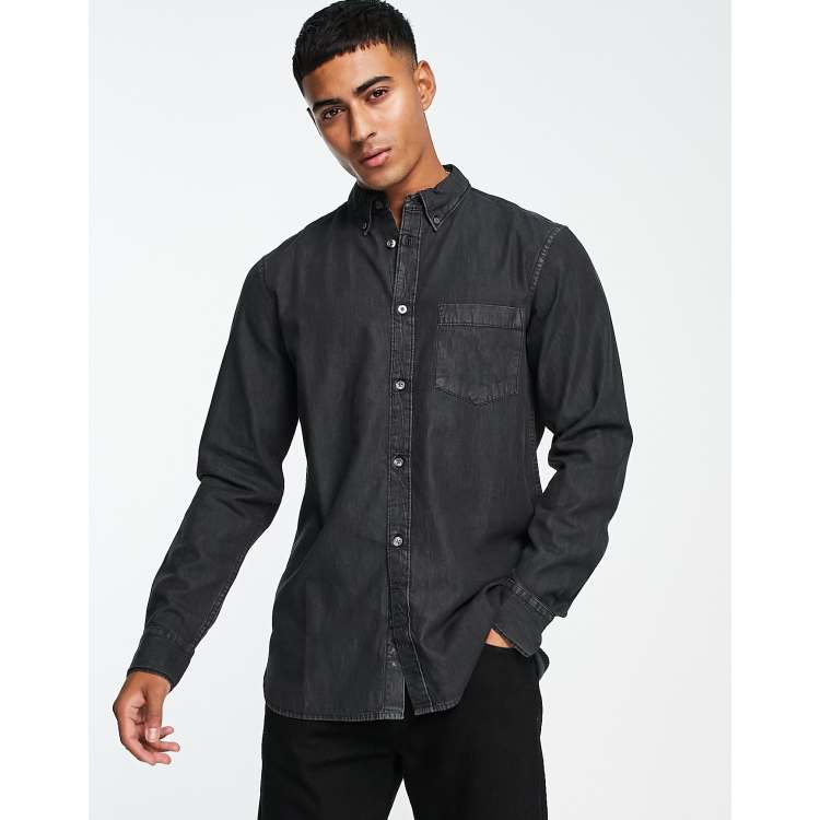 Black Denim Long Sleeve Casual Shirt For Men Shirt Very well made.