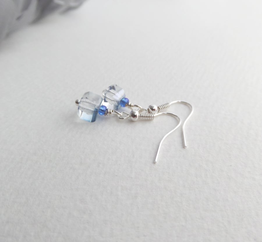 Cube Blue Silver Earrings Short Dangle Earrings Folksy Very well made.