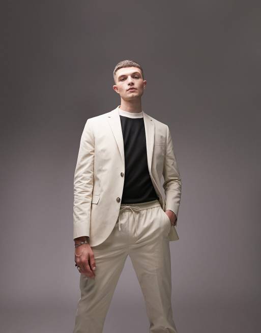 Topman skinny two button washed cotton suit jacket in ecru ASOS Very well made.