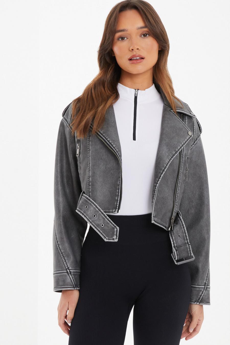 Charcoal Faux Leather Oversized Biker Jacket Quiz Clothing Very well made.