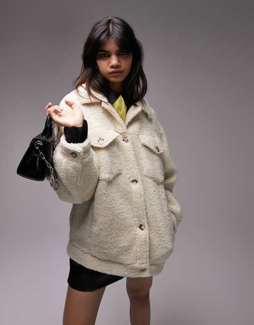 MOTO Ecru Oversized Borg Jackets Coats Clothing Topshop Very well made.