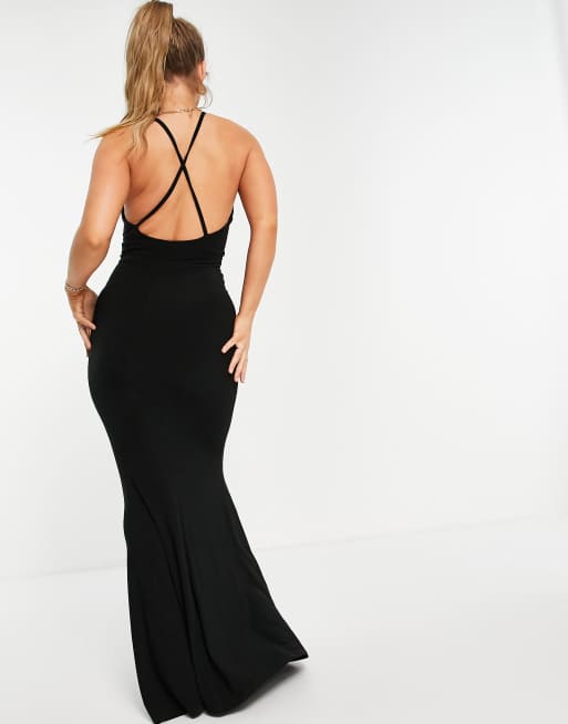 Club L London black plunge cross back fishtail maxi dress in black Very well made.