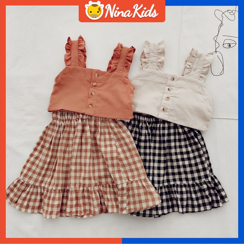 1 6 Years Kids Clothes Girls Suit Summer Short Vest Checkered Very well made.