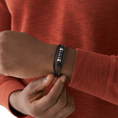 Stainless Steel and Black Leather Bracelet JOF00835998 Fossil Very well made.