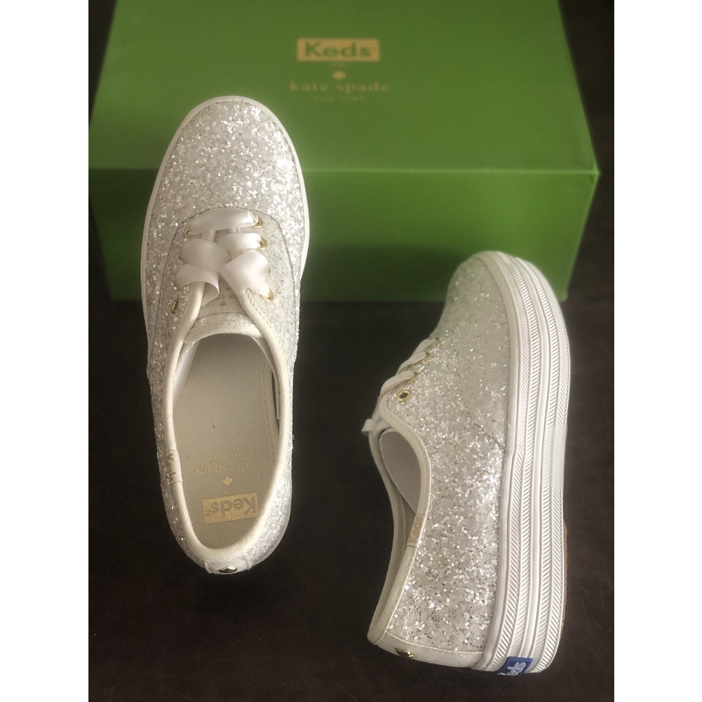 Keds X Kate Spade NY Champion White Glitter Sneakers Shoes Womens Very well made.