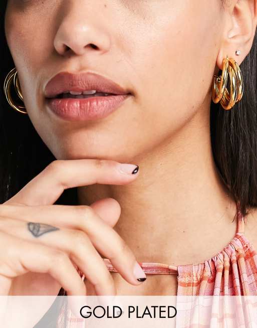 ASOS DESIGN 14k gold plated hoop earrings in triple row Very well made.