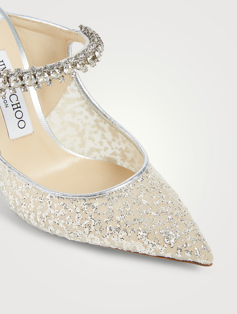 JIMMY CHOO Bing 100 Glitter Tulle Mules With Crystal Strap Holt Very well made.