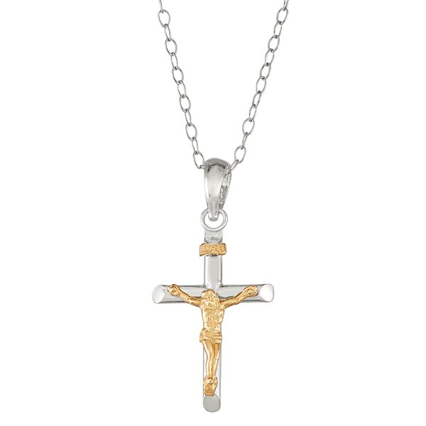 Sterling Silver and 14k Gold Crucifix Pendant Very well made.