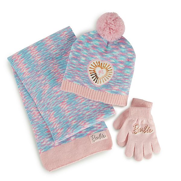 Girls Barbie Hat Scarf Mittens Set Very well made.