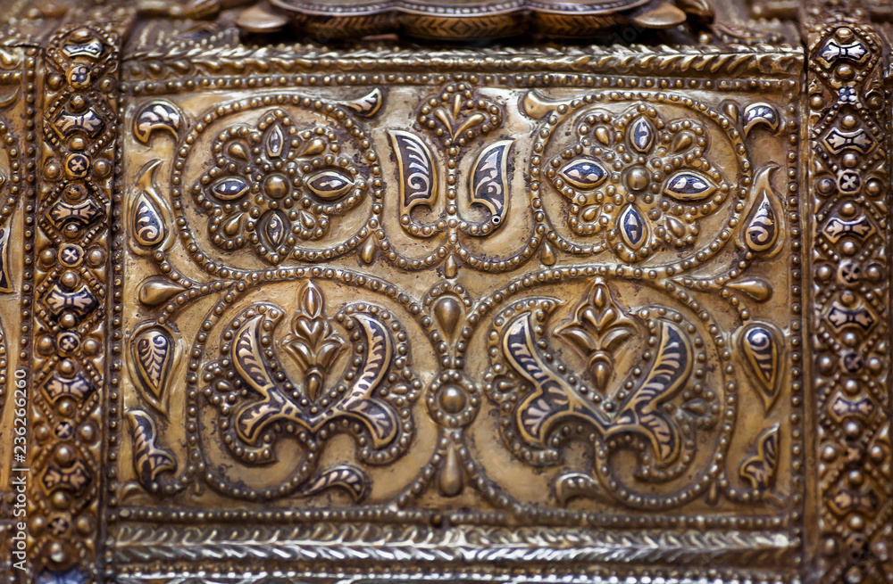 Patterns on the old jewelry box from historical Moorish medieval Very well made.