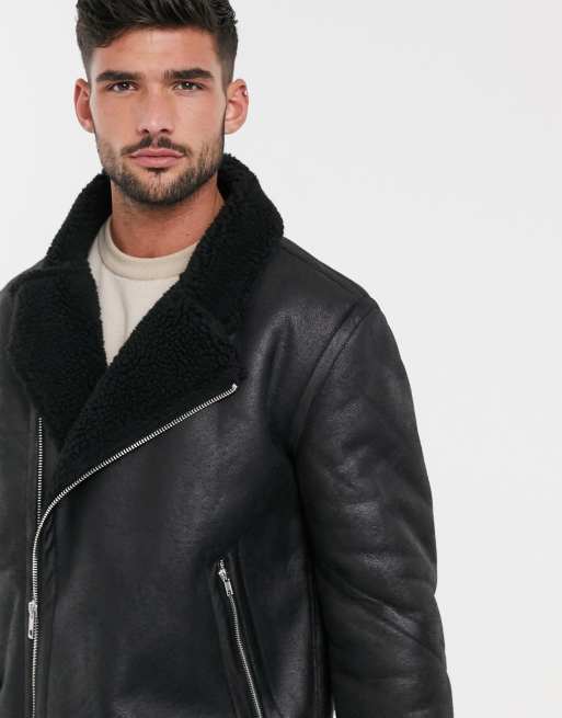 ASOS DESIGN faux shearling biker jacket with borg lining in black Very well made.