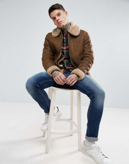 ASOS DESIGN faux shearling jacket in tan Very well made.
