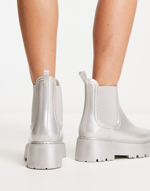 ASOS DESIGN Gadget chunky chelsea wellies in silver Very well made.