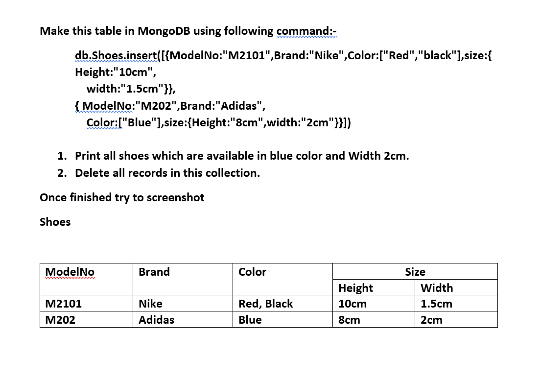 Solved Make this table in MongoDB using following command Very well made.