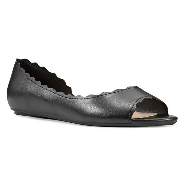 Women s 7 M Nine West Penelope Peep Toe Open Toe Ballet Flats Black Suede NWB Very well made.