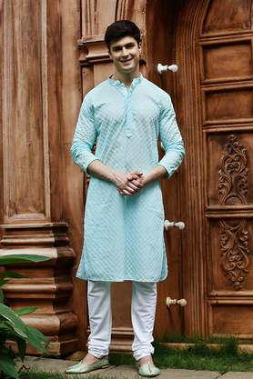Chikankari Cotton Regular Fit Men s Party Wear Kurta Very well made.