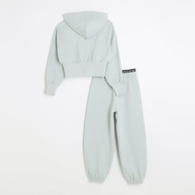 River Island girls Light Grey Cropped Hoody And Tracksuit Pants age 7 8 Very well made.