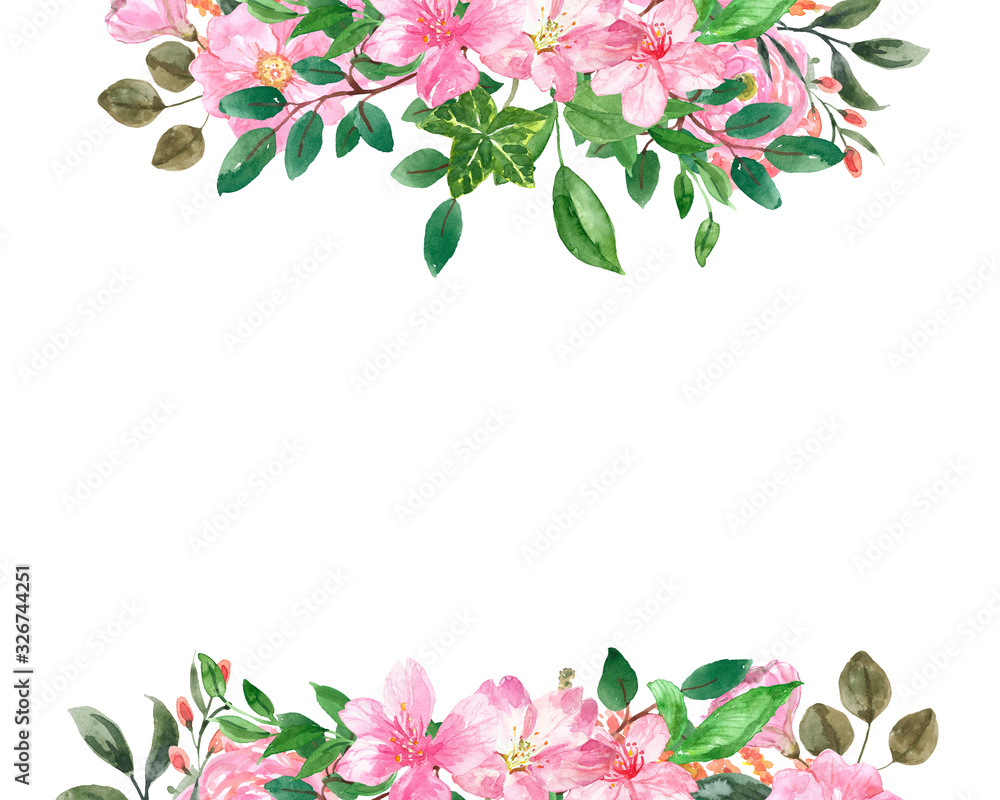 Beautiful spring floral frame on white background. Watercolor pink Very well made.