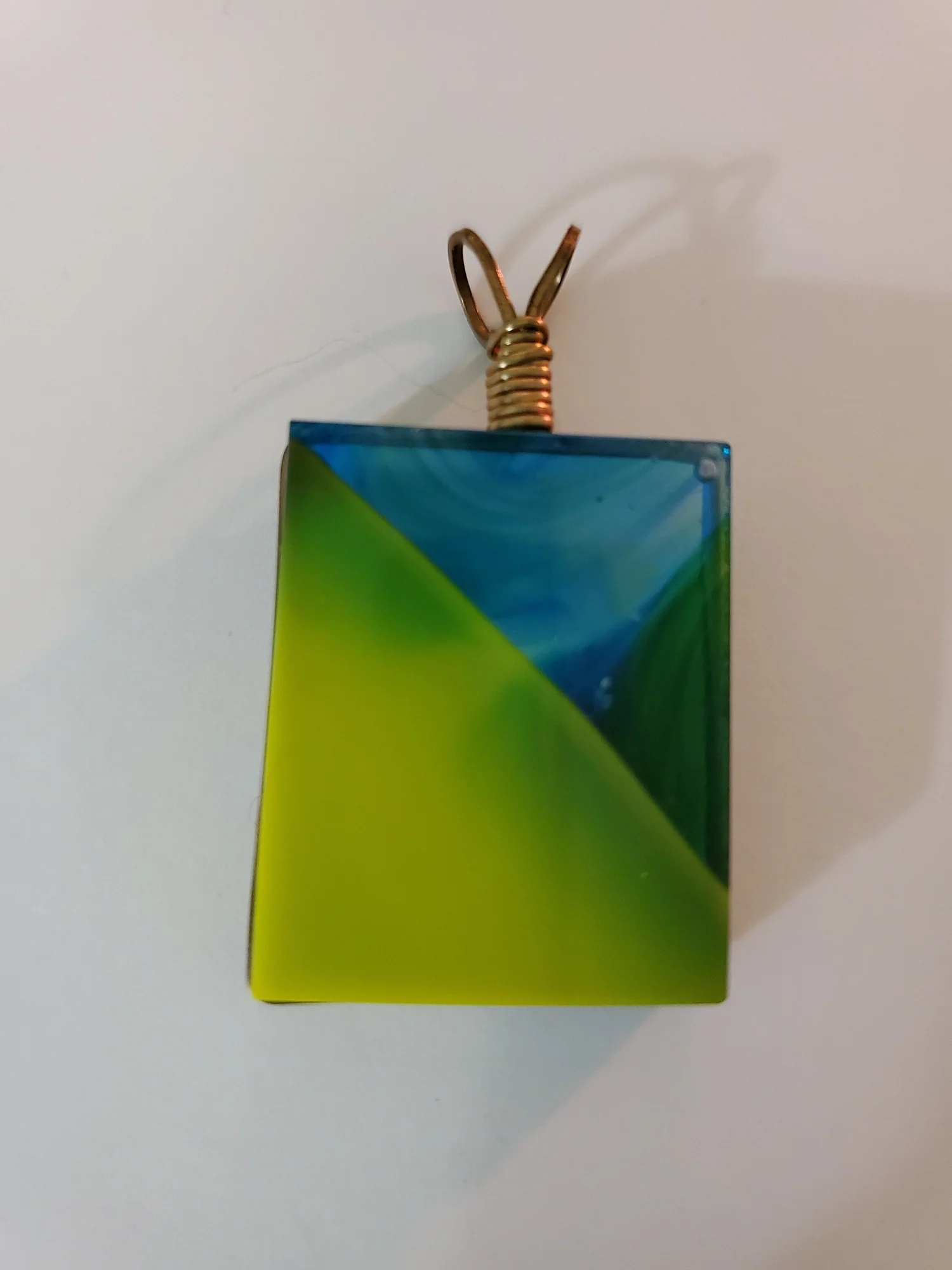 Wire Wrapped Square Green and Blue Fused Glass Pendant Very well made.