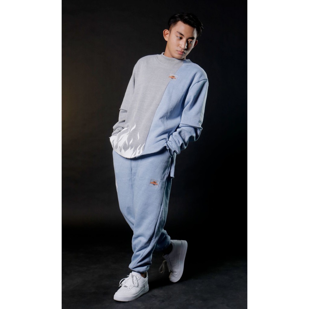 Flame Acid Blue Set Flame Fire Sweatshirt Sweatpants Two Tone Very well made.