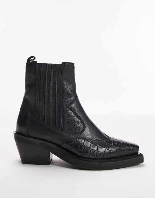Leather Cow Boy Croc Block Heel Ankle Boots SOSANDAR M S Very well made.