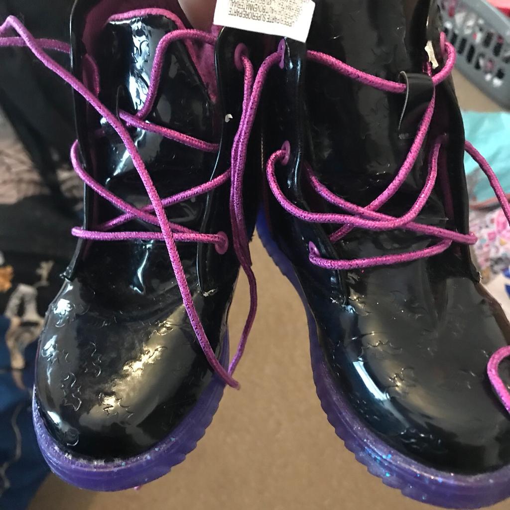 Girls Pink And Purple Patent Leather Short Girls Black Boots Very well made.