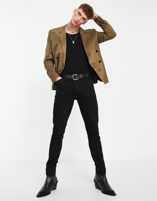 ASOS DESIGN slim blazer in tonal khaki green leopard ASOS Very well made.