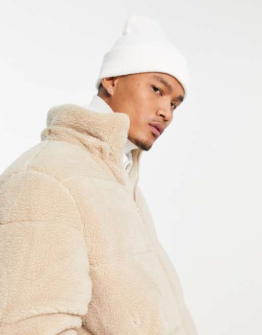 ASOS DESIGN borg puffer jacket with removable hood in green ASOS Very well made.