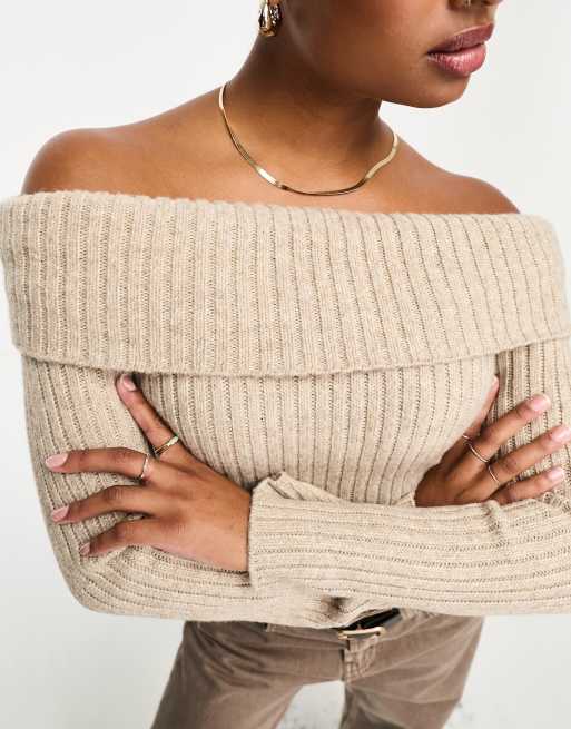 ASOS DESIGN Petite off shoulder jumper in chunky rib in oatmeal ASOS Very well made.