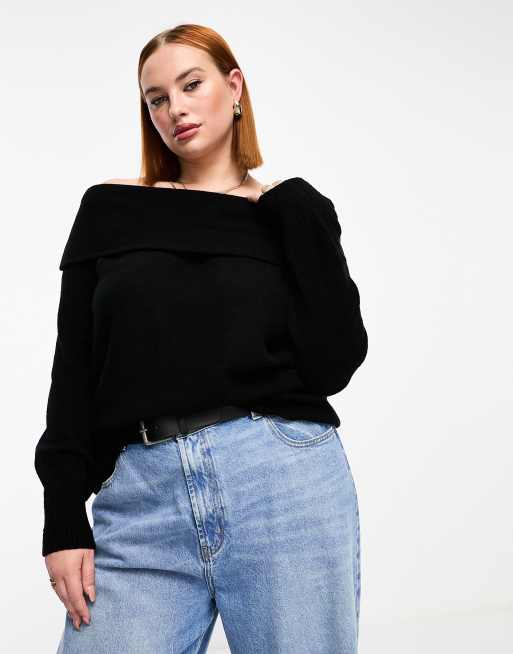 Threadbare Plus Ella off shoulder jumper in black ASOS Very well made.