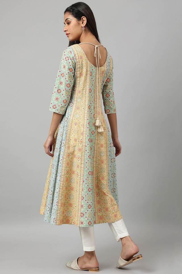 Buy W Printed Cotton Round Neck Women s Kurta Shoppers Stop Very well made.