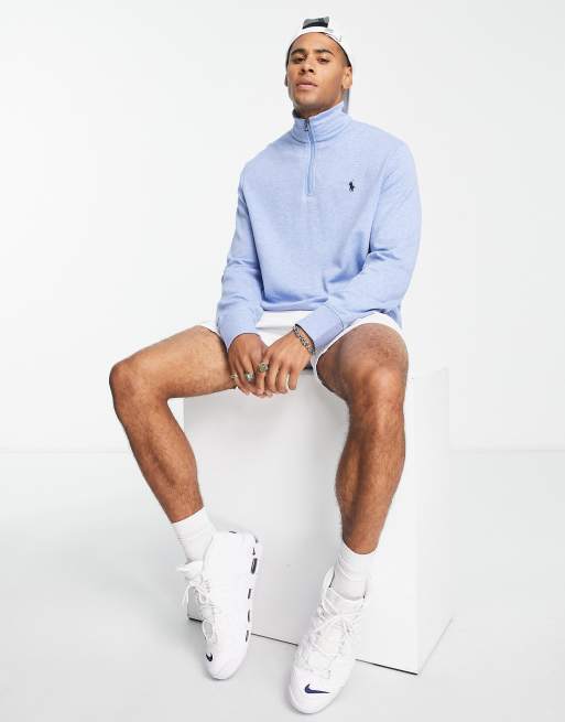 Polo Ralph Lauren half zip sweatshirt in light blue with pony logo Very well made.