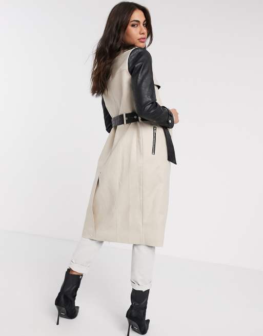 River Island trench coat with faux leather sleeves in beige ASOS Very well made.