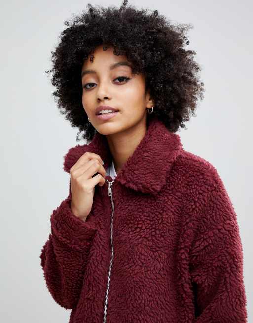 New Look teddy faux fur bomber jacket in burgundy Very well made.