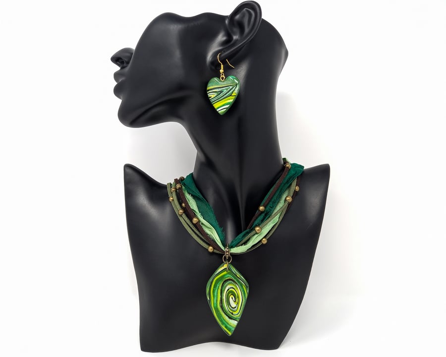 SALE Woodland green silk scarf necklace with Folksy Very well made.