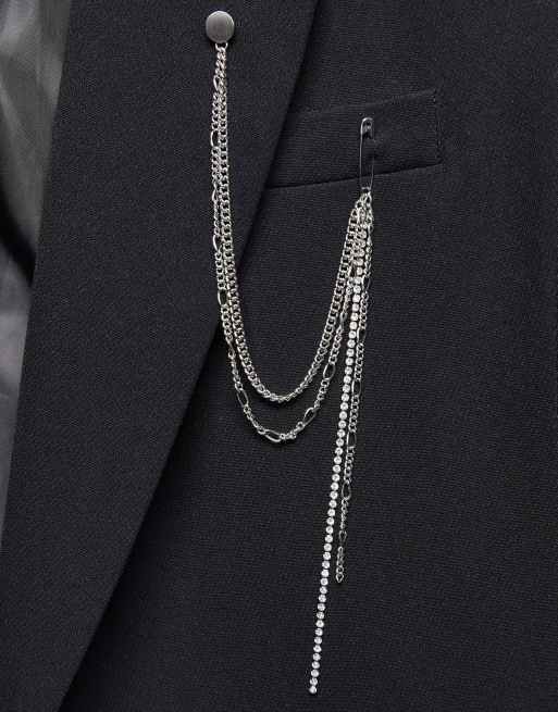 ASOS DESIGN Wedding cup chain drapey brooch in silver tone Very well made.