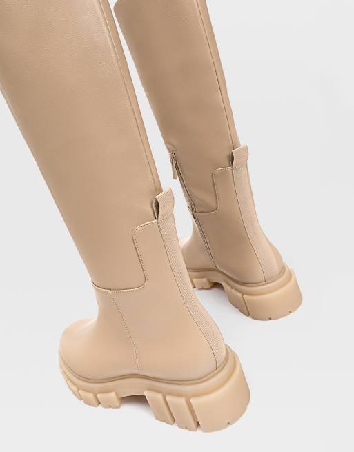 Stradivarius knee boots with chunky sole in caramel Very well made.