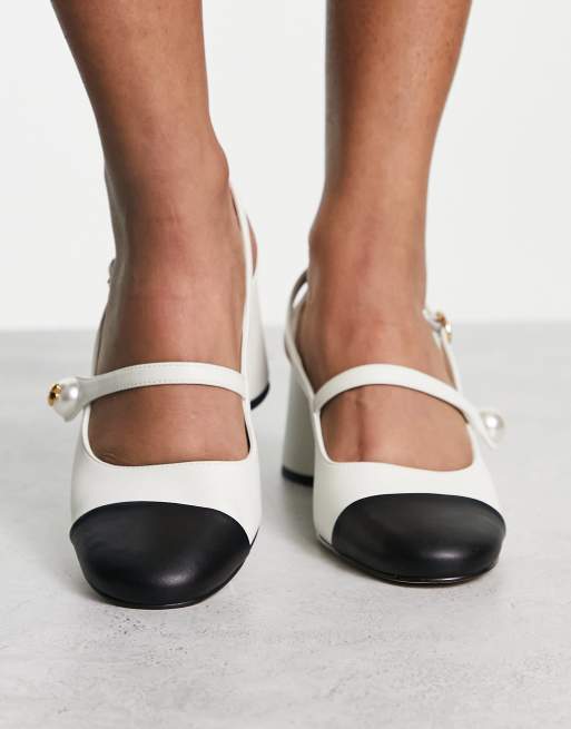 Charles Keith slingback black toe heeled shoes in white Very well made.